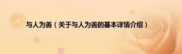 本文关于与人为善的基本详情介绍就讲解完毕,希望对大家有所帮助。