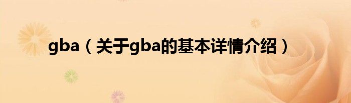 本文关于gba的基本详情介绍就讲解完毕,希望对大家有所帮助。