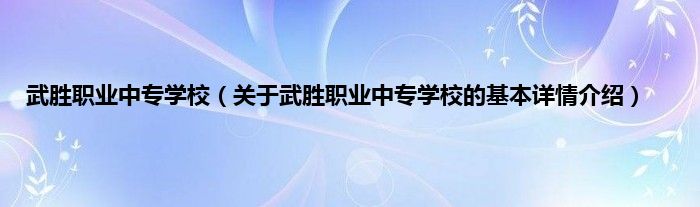 本文关于武胜职业中专学校的基本详情介绍就讲解完毕,希望对大家有所帮助。