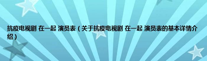 本文关于抗疫电视剧 在一起 演员表的基本详情介绍就讲解完毕,希望对大家有所帮助。