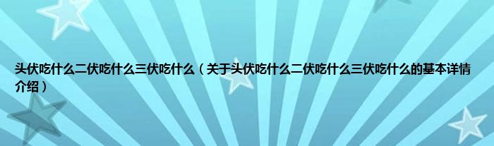 本文关于头伏吃什么二伏吃什么三伏吃什么的基本详情介绍就讲解完毕,希望对大家有所帮助。