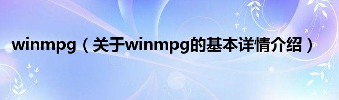 本文关于winmpg的基本详情介绍就讲解完毕,希望对大家有所帮助。