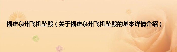 本文关于福建泉州飞机坠毁的基本详情介绍就讲解完毕,希望对大家有所帮助。