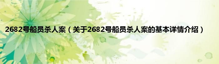 本文关于2682号船员杀人案的基本详情介绍就讲解完毕,希望对大家有所帮助。