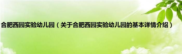 本文关于合肥西园实验幼儿园的基本详情介绍就讲解完毕,希望对大家有所帮助。