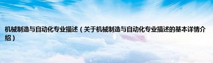 本文关于机械制造与自动化专业描述的基本详情介绍就讲解完毕,希望对大家有所帮助。