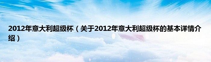 本文关于2012年意大利超级杯的基本详情介绍就讲解完毕,希望对大家有所帮助。