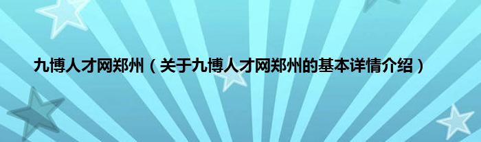 本文关于九博人才网郑州的基本详情介绍就讲解完毕,希望对大家有所帮助。
