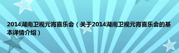 本文关于2014湖南卫视元宵喜乐会的基本详情介绍就讲解完毕,希望对大家有所帮助。