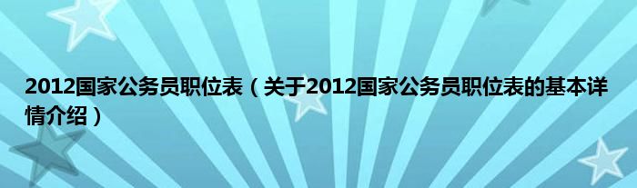 本文关于2012国家公务员职位表的基本详情介绍就讲解完毕,希望对大家有所帮助。