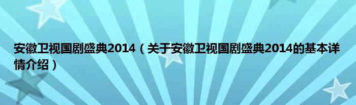 本文关于安徽卫视国剧盛典2014的基本详情介绍就讲解完毕,希望对大家有所帮助。