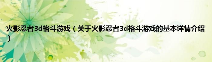 本文关于火影忍者3d格斗游戏的基本详情介绍就讲解完毕,希望对大家有所帮助。