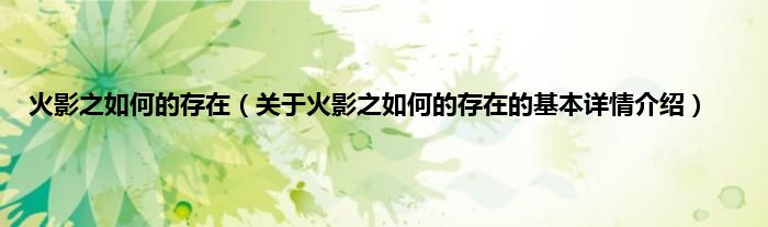 本文关于火影之如何的存在的基本详情介绍就讲解完毕,希望对大家有所帮助。