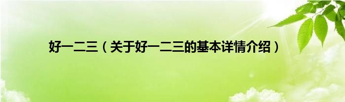 本文关于好一二三的基本详情介绍就讲解完毕,希望对大家有所帮助。