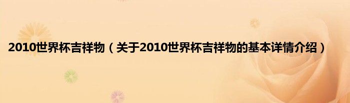 本文关于2010世界杯吉祥物的基本详情介绍就讲解完毕,希望对大家有所帮助。