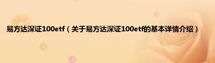 本文关于易方达深证100etf的基本详情介绍就讲解完毕,希望对大家有所帮助。