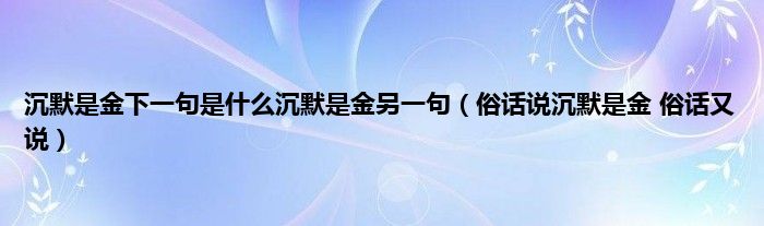 以上就是【沉默是金下一句是什么沉默是金另一句,俗话说沉默是金 俗话又说】相关内容。