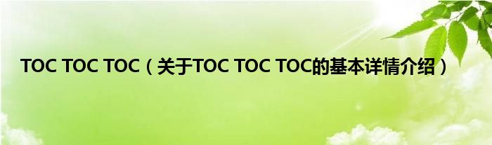 本文关于TOC TOC TOC的基本详情介绍就讲解完毕,希望对大家有所帮助。