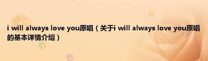 本文关于i will always love you原唱的基本详情介绍就讲解完毕,希望对大家有所帮助。