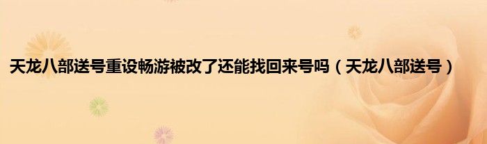 大家好,小问来为大家解答以上问题。天龙八部送号重设畅游被改了还能找回来号吗,天龙八部送号这个很多人还不知道,现在让我们一起来看看吧!