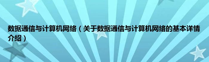 本文关于数据通信与计算机网络的基本详情介绍就讲解完毕,希望对大家有所帮助。