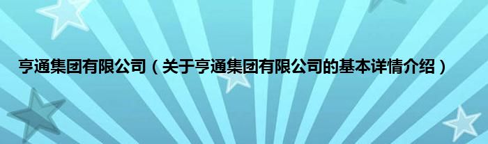 本文关于亨通集团有限公司的基本详情介绍就讲解完毕,希望对大家有所帮助。