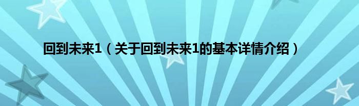 本文关于回到未来1的基本详情介绍就讲解完毕,希望对大家有所帮助。