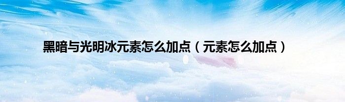 大家好,小问来为大家解答以上问题。黑暗与光明冰元素怎么加点,元素怎么加点这个很多人还不知道,现在让我们一起来看看吧!