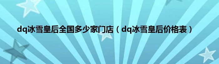 大家好,小问来为大家解答以上问题。dq冰雪皇后全国多少家门店,dq冰雪皇后价格表这个很多人还不知道,现在让我们一起来看看吧!