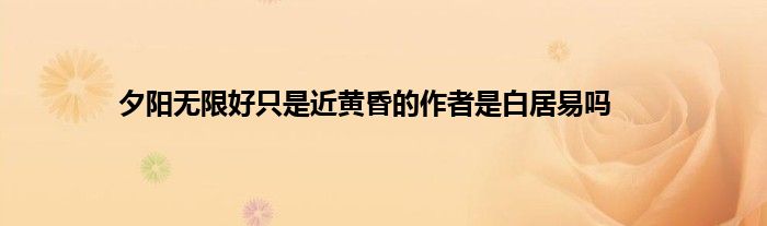 以上就是【夕阳无限好只是近黄昏的作者是白居易吗】相关内容。