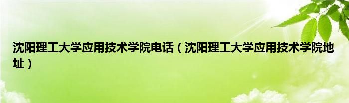 以上就是【沈阳理工大学应用技术学院电话,沈阳理工大学应用技术学院地址】相关内容。