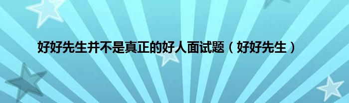 大家好,小问来为大家解答以上问题。好好先生并不是真正的好人面试题,好好先生这个很多人还不知道,现在让我们一起来看看吧!