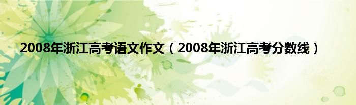 大家好,小问来为大家解答以上问题。2008年浙江高考语文作文,2008年浙江高考分数线这个很多人还不知道,现在让我们一起来看看吧!