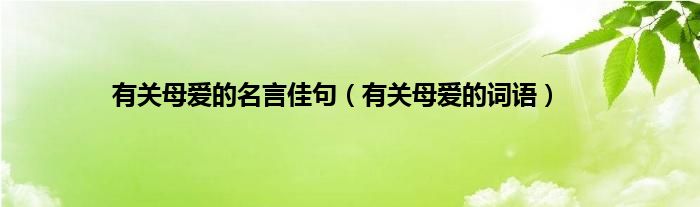 大家好,小问来为大家解答以上问题。有关母爱的名言佳句,有关母爱的词语这个很多人还不知道,现在让我们一起来看看吧!