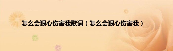 以上就是【怎么会狠心伤害我歌词,怎么会狠心伤害我】相关内容。