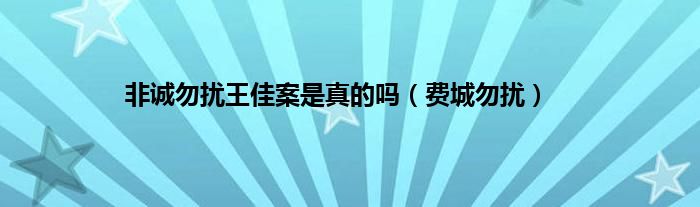 大家好,小问来为大家解答以上问题。非诚勿扰王佳案是真的吗,费城勿扰这个很多人还不知道,现在让我们一起来看看吧!