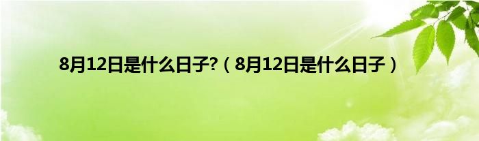 大家好,小问来为大家解答以上问题。8月12日是什么日子?,8月12日是什么日子这个很多人还不知道,现在让我们一起来看看吧!