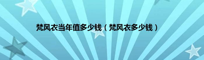 大家好,小问来为大家解答以上问题。梵风衣当年值多少钱,梵风衣多少钱这个很多人还不知道,现在让我们一起来看看吧!