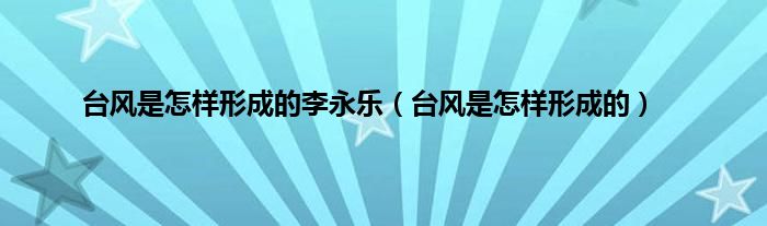大家好,小问来为大家解答以上问题。台风是怎样形成的李永乐,台风是怎样形成的这个很多人还不知道,现在让我们一起来看看吧!