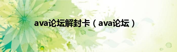 大家好,小问来为大家解答以上问题。ava论坛解封卡,ava论坛这个很多人还不知道,现在让我们一起来看看吧!