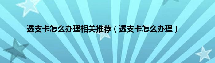 大家好,小问来为大家解答以上问题。透支卡怎么办理相关推荐,透支卡怎么办理这个很多人还不知道,现在让我们一起来看看吧!