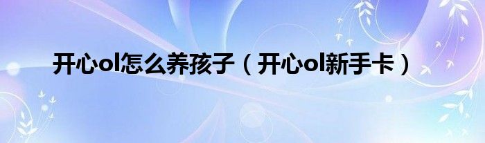 大家好,小问来为大家解答以上问题。开心ol怎么养孩子,开心ol新手卡这个很多人还不知道,现在让我们一起来看看吧!