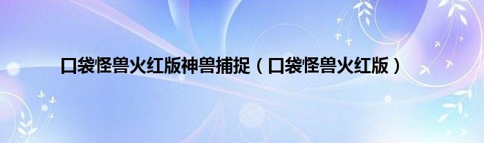 以上就是【口袋怪兽火红版神兽捕捉,口袋怪兽火红版】相关内容。