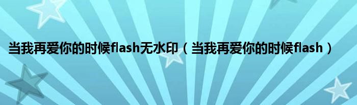 大家好,小问来为大家解答以上问题。当我再爱你的时候flash无水印,当我再爱你的时候flash这个很多人还不知道,现在让我们一起来看看吧!
