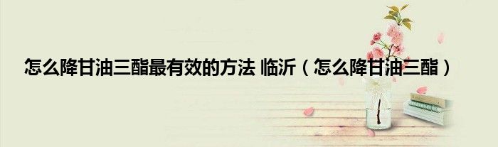 大家好,怎么降甘油三酯最有效的方法 临沂,怎么降甘油三酯很多人还不知道,现在让我们一起来看看吧!