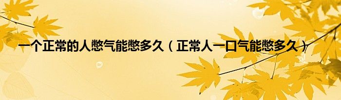 大家好,小问来为大家解答以上问题。一个正常的人憋气能憋多久,正常人一口气能憋多久这个很多人还不知道,现在让我们一起来看看吧!