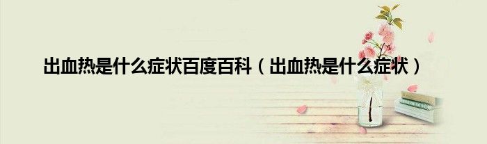 本文,出血热是什么症状百度百科,出血热是什么症状到此就分享完毕,希望对大家有所帮助。