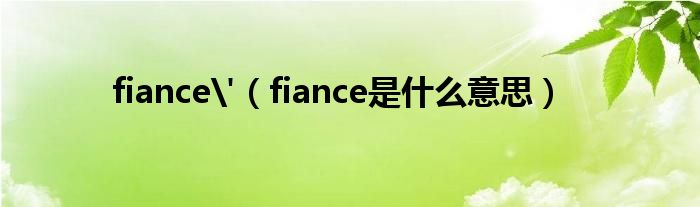大家好,小问来为大家解答以上问题。fiance',fiance是什么意思这个很多人还不知道,现在让我们一起来看看吧!