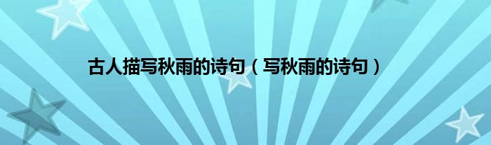 大家好,小问来为大家解答以上问题。古人描写秋雨的诗句,写秋雨的诗句这个很多人还不知道,现在让我们一起来看看吧!