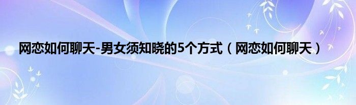 以上就是【网恋如何聊天-男女须知晓的5个方式,网恋如何聊天】相关内容。